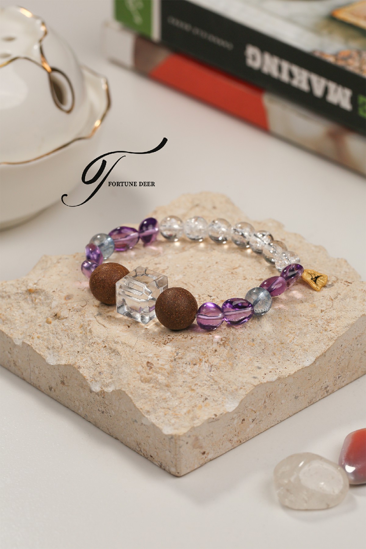 A sacred fusion of amethyst, clear quartz, and Daoist herbal essence.