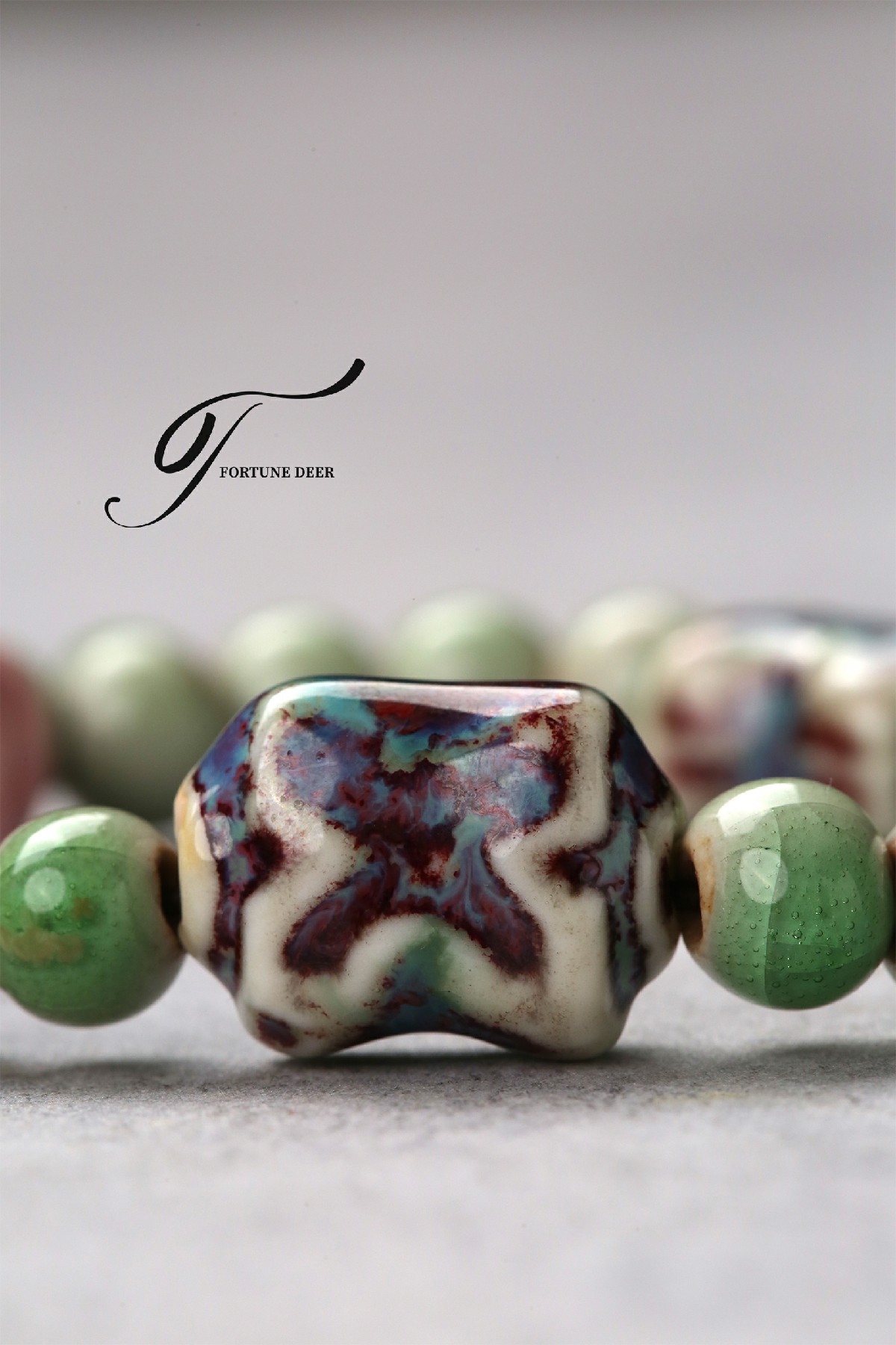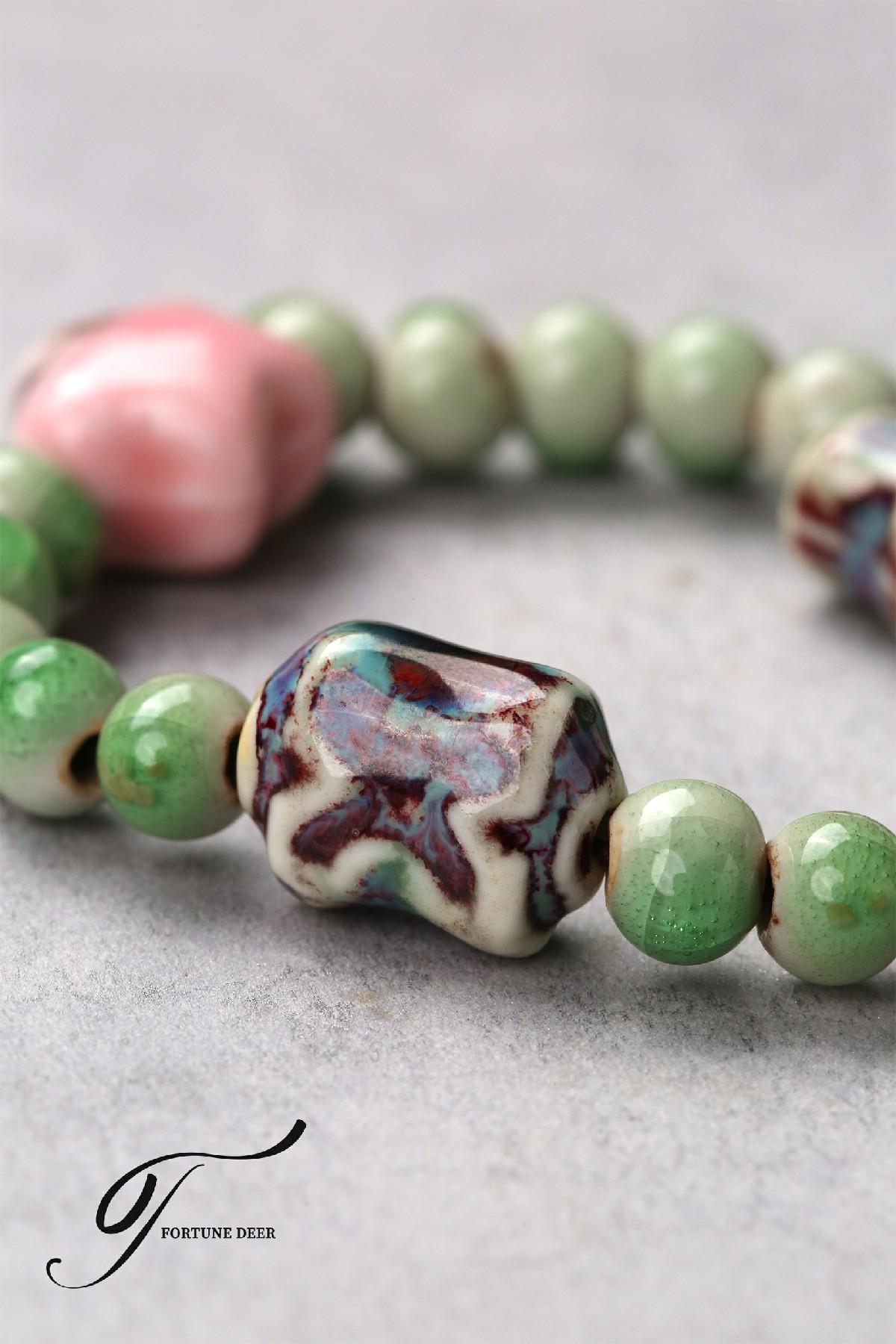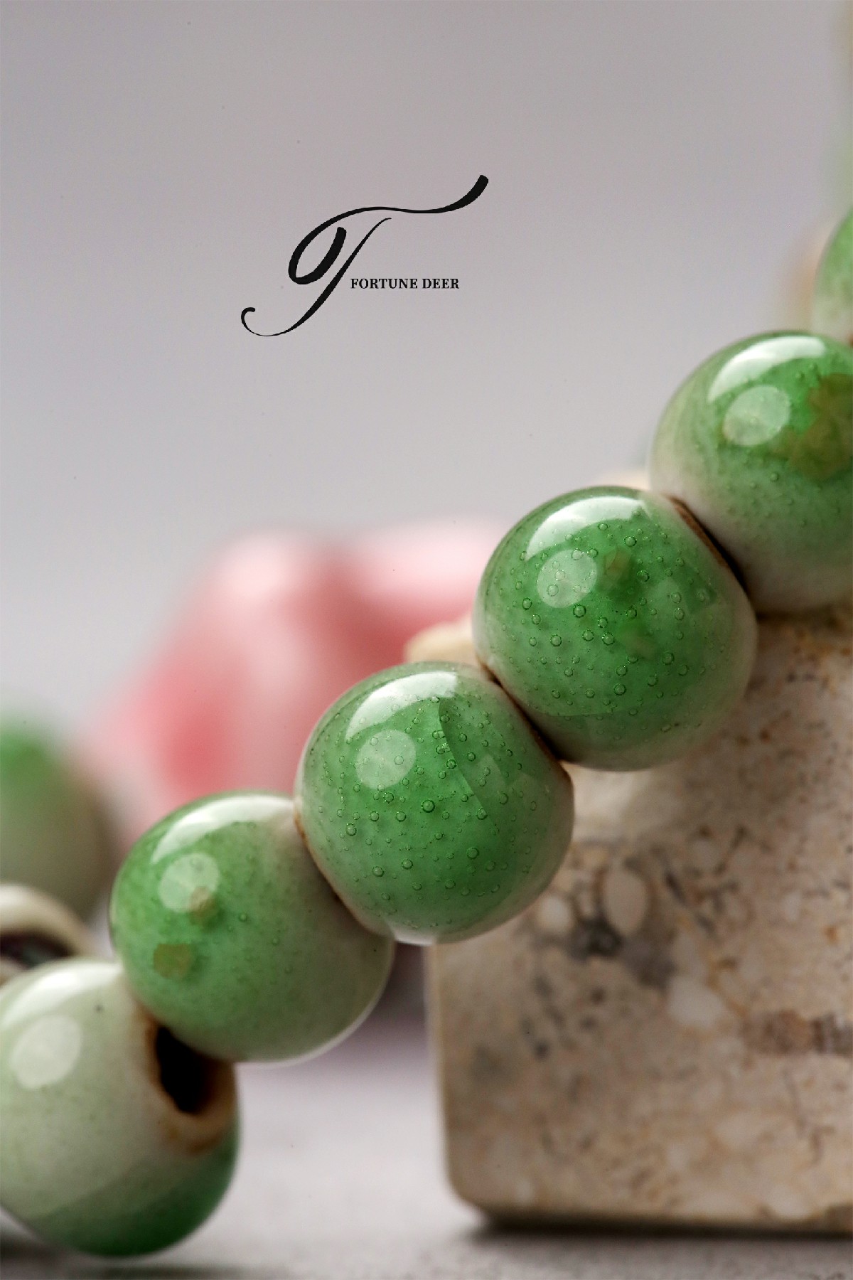 This bracelet embodies the timeless power of nature, with rich green ceramic beads representing the energy of wood and the grounding force of the earth. Delicate pink star accents symbolize transformation and renewal, adding a soft, balancing touch. It connects you with the hidden energies of growth and vitality, inviting balance, strength, and subtle spiritual growth. Wear it to embrace the powerful forces of nature and invite harmony into your life.